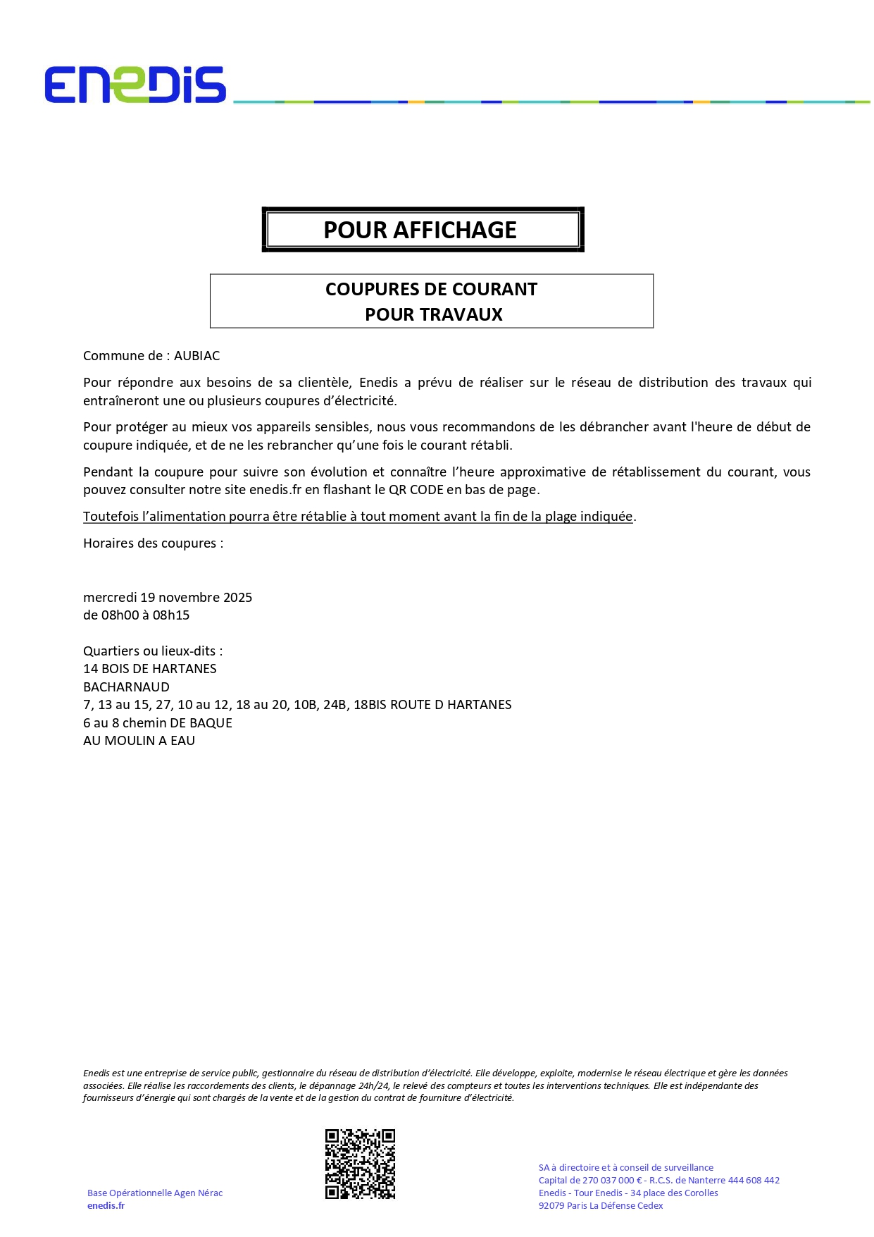 ENEDIS VOUS INFORME: