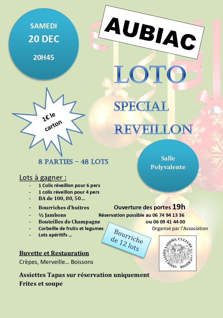 LCT vous invite à son traditionnel loto de Noël spécial réveillon