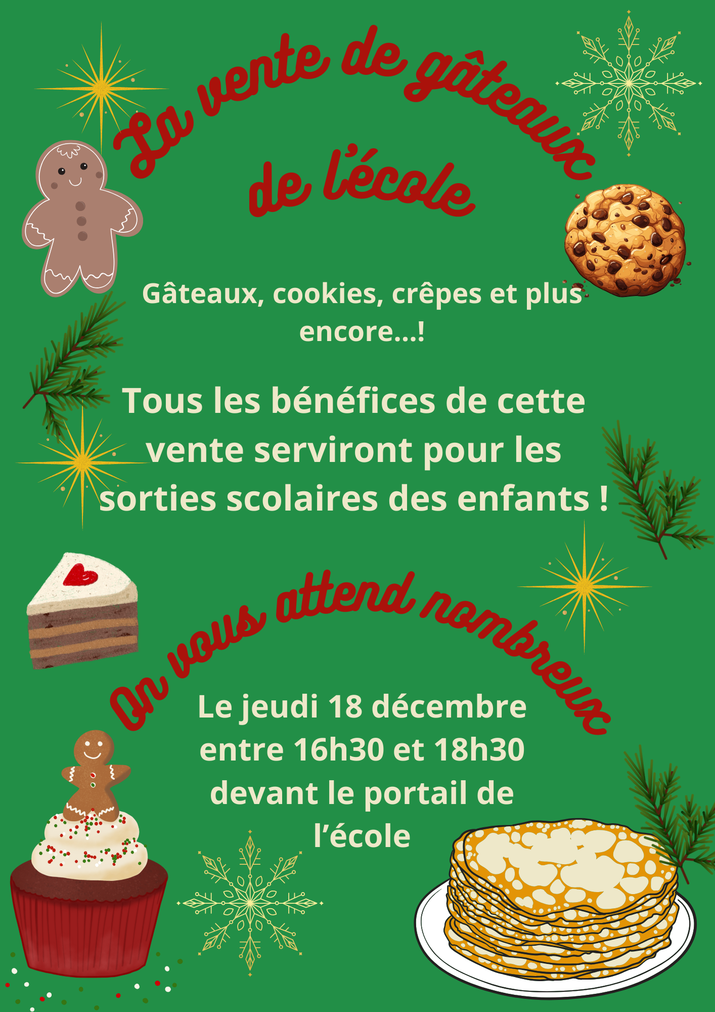 đȘ VENTE DE GATEAUX DE L’ECOLE đ§ JEUDI 18 DECEMBRE 2025